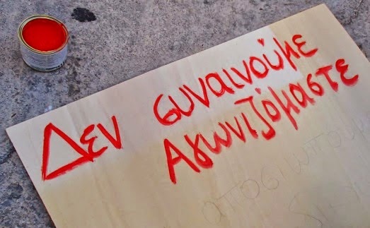 Απαντώντας στο με αρ. πρωτ. 13302/19-11-2014 έγγραφό σας, σας δηλώνουμε ότι δεν θα λάβουμε μέρος στη συνάντηση-συζήτηση για την επικείμενη αξιολόγησή μας, υλοποιώντας την απόφαση της ΔΟΕ (αρ. πρωτ. Εγγρ. Δ.Ο.Ε. 1207/10-11-2014) και τις αποφάσεις του Συλλόγου Εκπαιδευτικών Π.Ε. Ρόδου του οποίου είμαστε ενεργά μέλη και δηλώνουμε απεργία-αποχή από κάθε διαδικασία που αφορά στην αξιολόγηση και την Α.Ε.Ε. από 2-11-2014 έως και 23-12-2014.